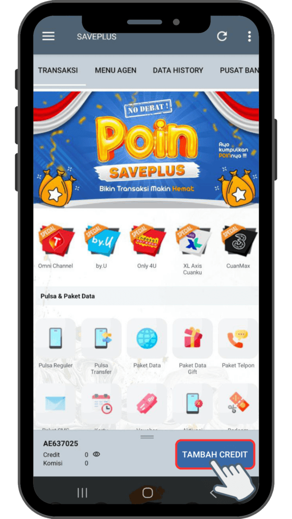 1. Ketuk tombol Tambah Credit