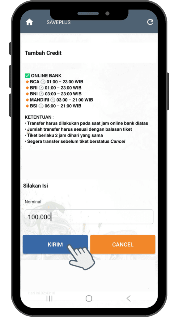 Pastikan Credit/saldo Anda mencukupi sebelum bertransaksi