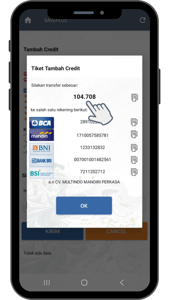 4. Transfer sesuai dengan nominal tiket